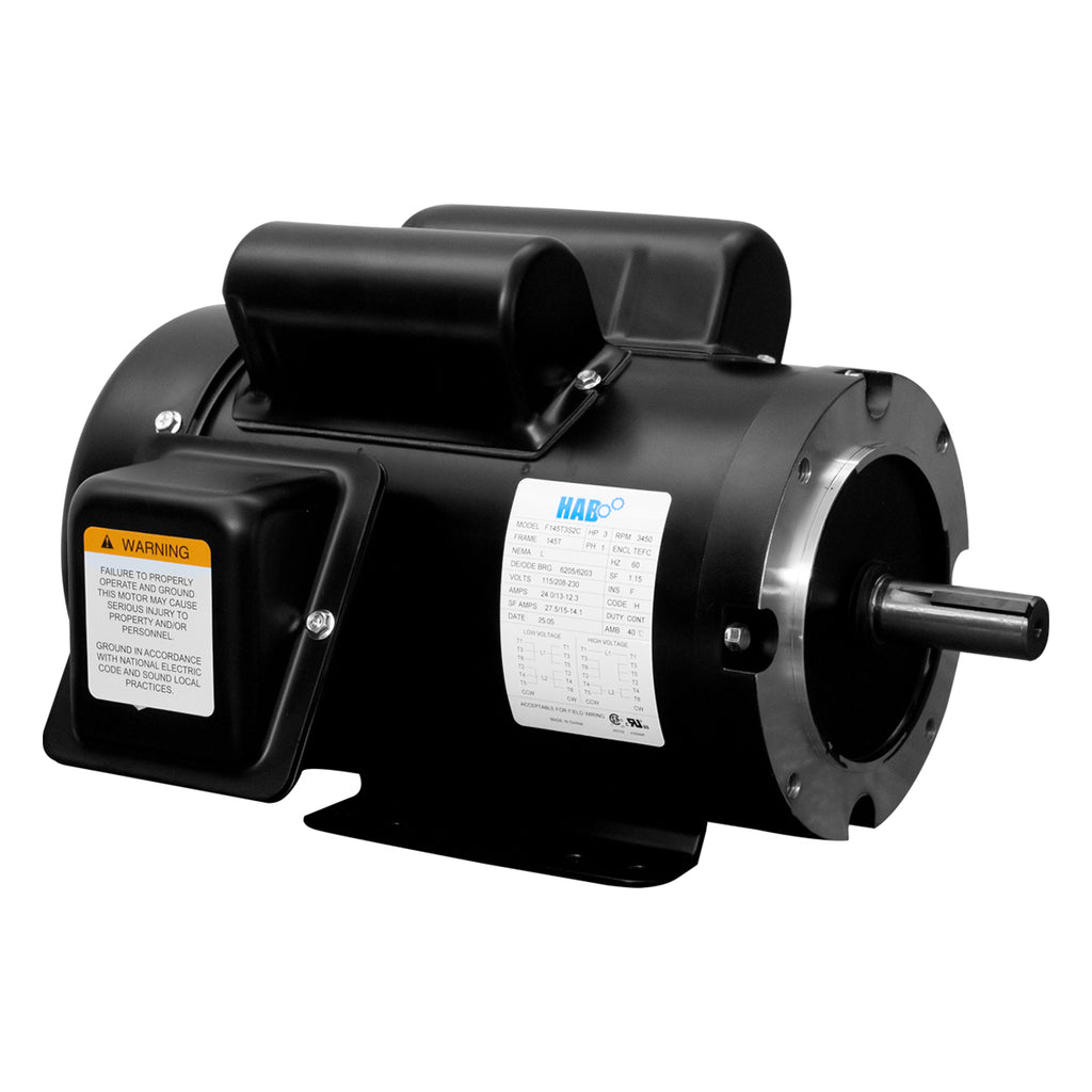 Motor Eléctrico HAB Bifasico 3 HP 3550 RPM Arm. 145TC Lamina Rolada Brida C Mod. H145T3S2C