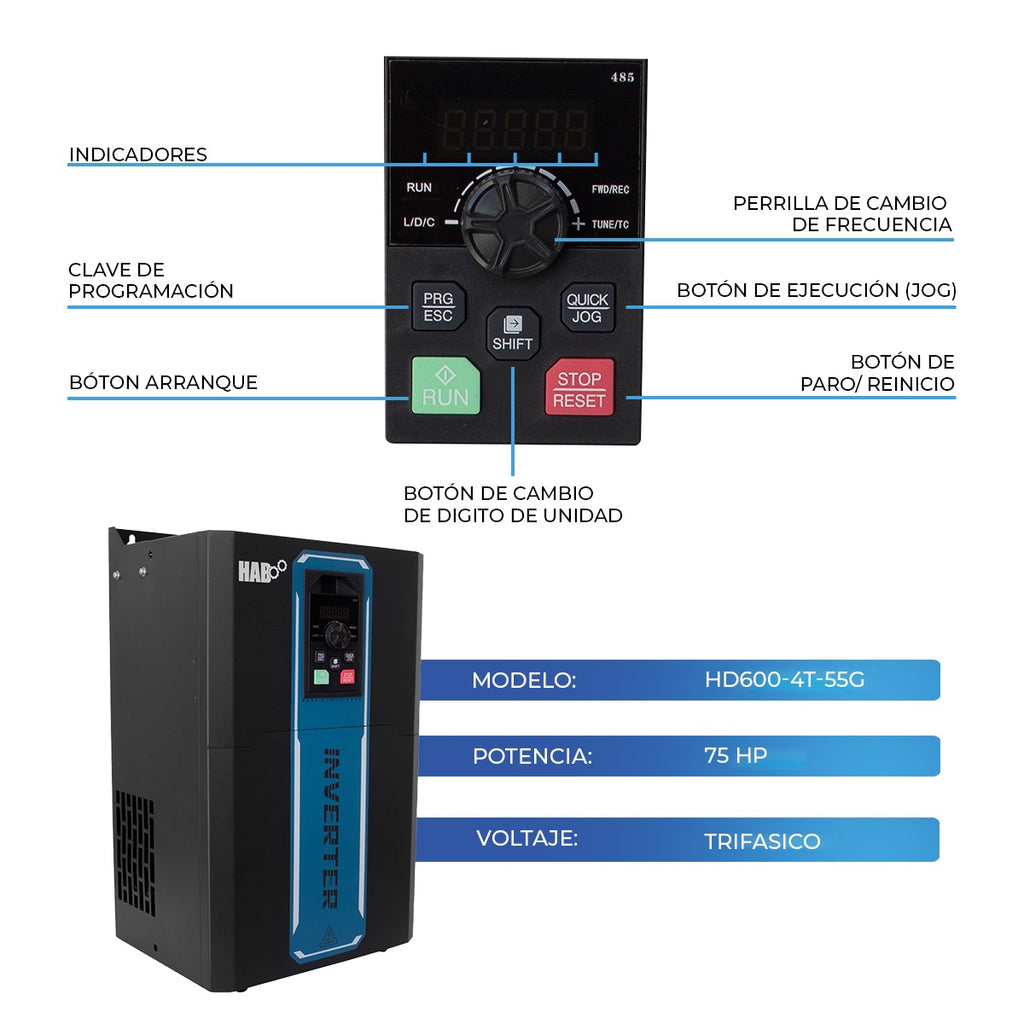 Variador De Frecuencia HAB Motor 75 HP Trifasico 440v